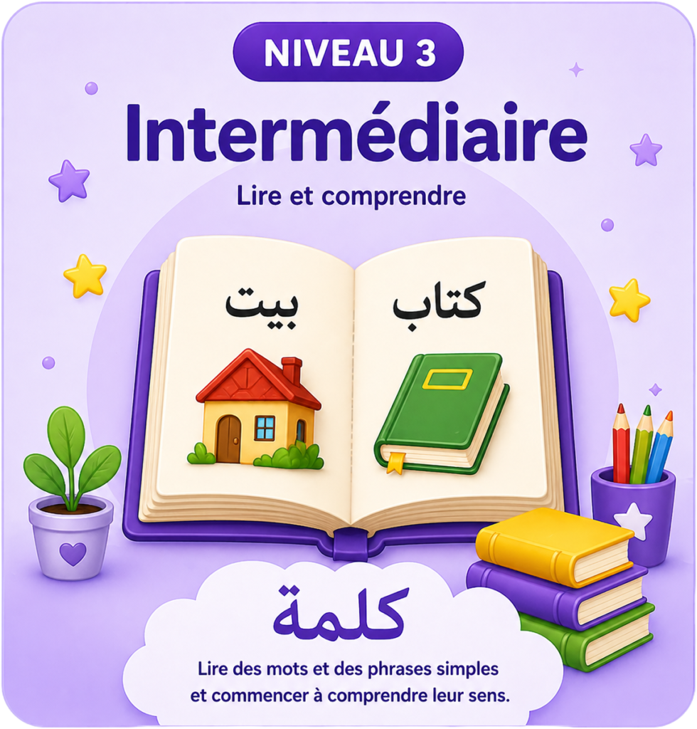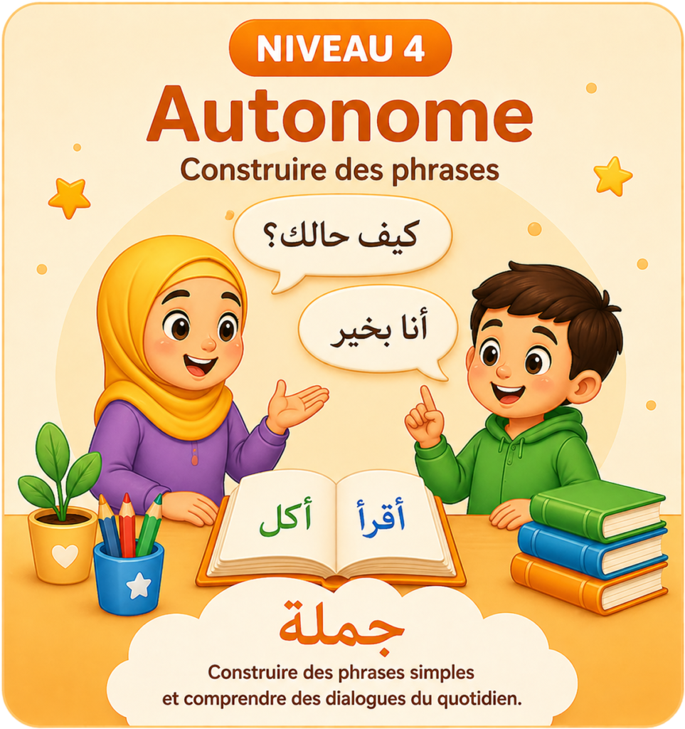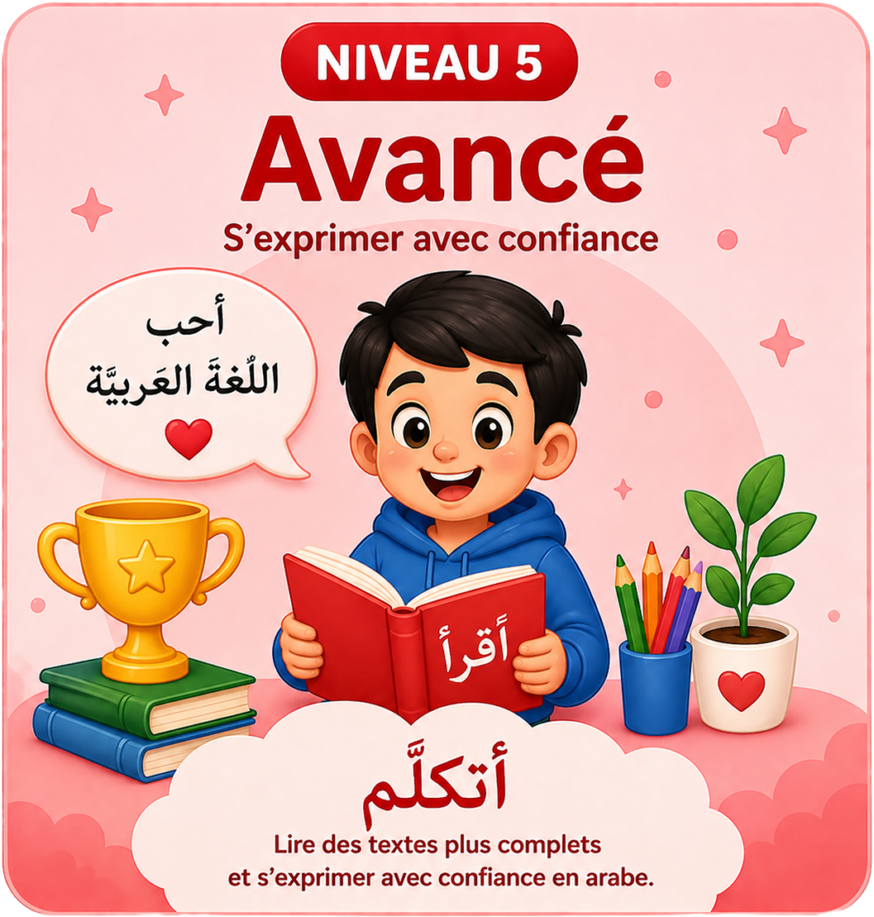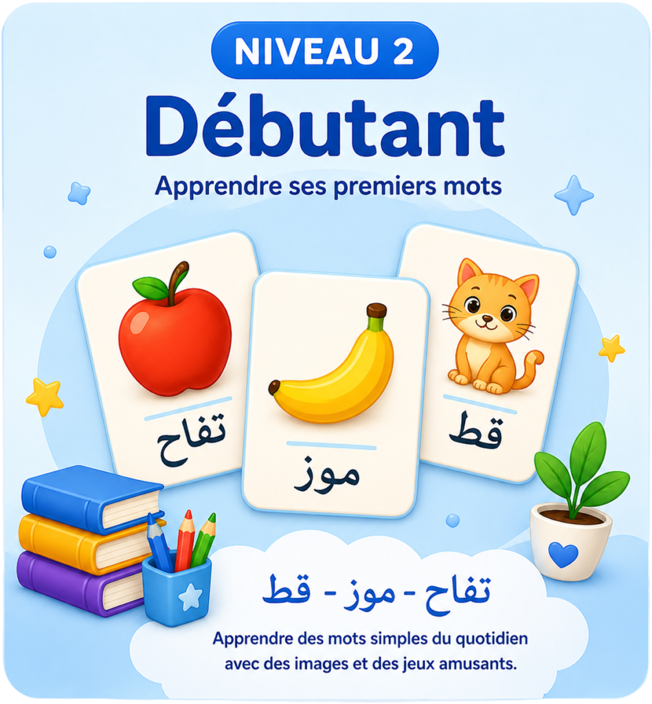 Ici, votre enfant progresse pas à pas à travers différents niveaux, pensés pour apprendre l’arabe de manière simple, ludique et motivante.